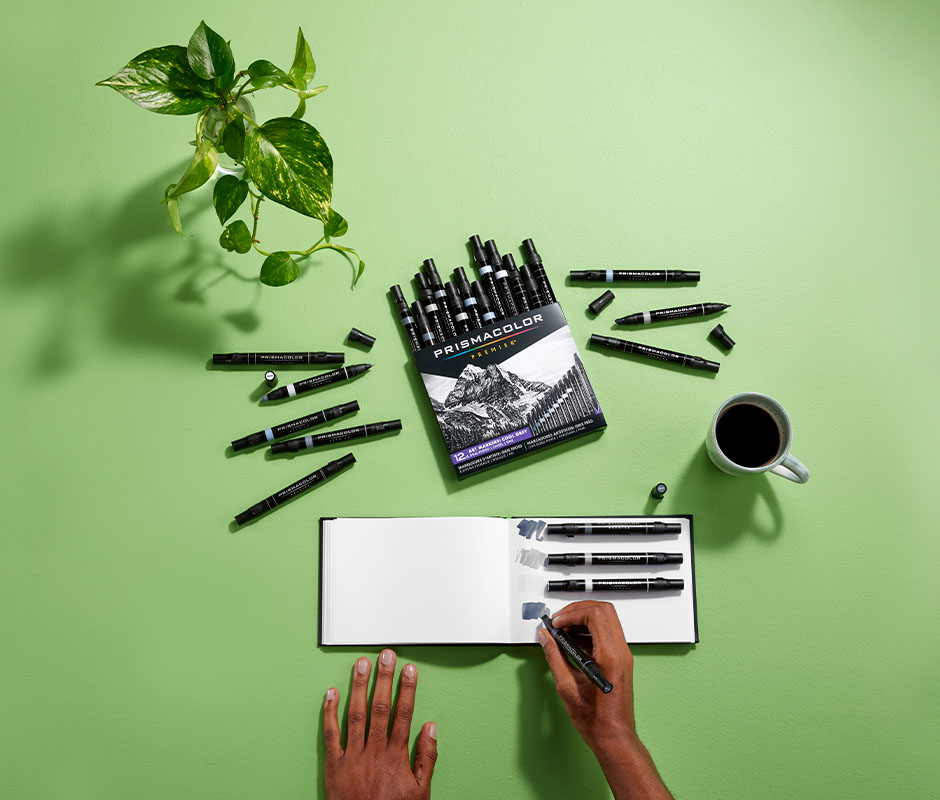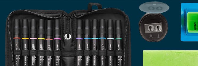 Bienvenido al vibrante mundo de Prismacolor®. Dibuja retratos y paisajes con una complejidad inigualable usando nuestra amplia gama de lápices de colores premium de tonos vívidos. Perfecciona tu hand-lettering o ilustraciones con la alta definición de los marcadores Prismacolor® como nuestros Marcadores Premier® doble punta, que garantizan una consistencia de color uniforme. Facilita tu proceso artístico usando nuestros accesorios profesionales, que incluyen gomas de borrar y tajadores. Deja que tu imaginación te guíe con nuestros sets de coloración para adultos y lleva tus diseños a un nuevo nivel. Ilustra lo que el arte significa para ti con Prismacolor® y convierte cada trazo en una obra maestra.